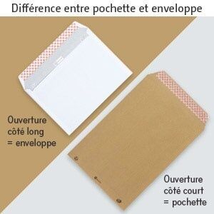 Excellente question… On s’imagine souvent une pochette de type kraft dédiée aux envois standard et une enveloppe blanche élégante… A-t-on raison ? Pas vraiment ! La différence se situe tout simplement au niveau de la patte de fermeture. Sur une enveloppe, la patte de fermeture est sur le côté le plus long, alors que sur une pochette, elle se positionne sur le côté le plus court.