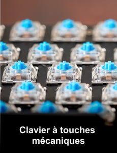 Dans le clavier mécanique, chaque touche est associée à un interrupteur mécanique individuel (interrupteur à clic ou interrupteur à action linéaire). C'est le clavier idéal pour les amateurs de jeux et les personnes faisant beaucoup de saisie de texte.