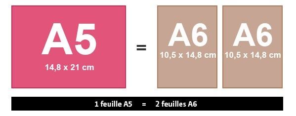 Une feuille A5 correspond au format de deux feuilles A6 côte à côte.