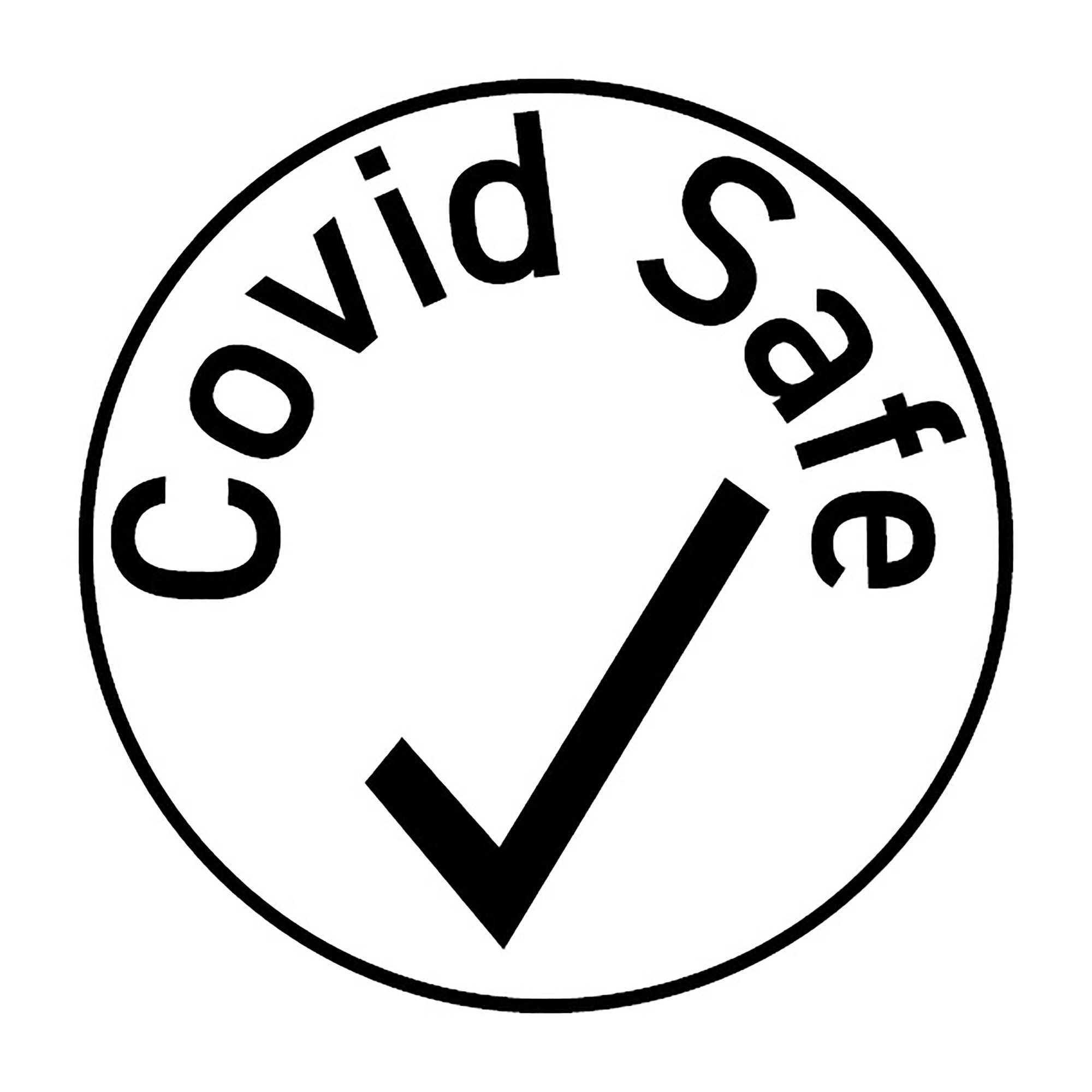 Medium round stamp, with "Covid Safe" print. Diameter 22mm.