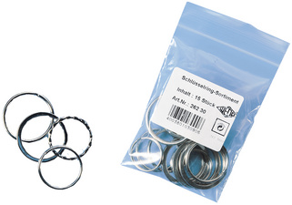 Detailled descriptionTrié par 3 anneaux par diamètre 25 mm, 30 mm et 35mm anneau de 30 mm ondulé, anneau de 35 mm plat, en acier rigide, nickelé brillant contenu: 15 pièces