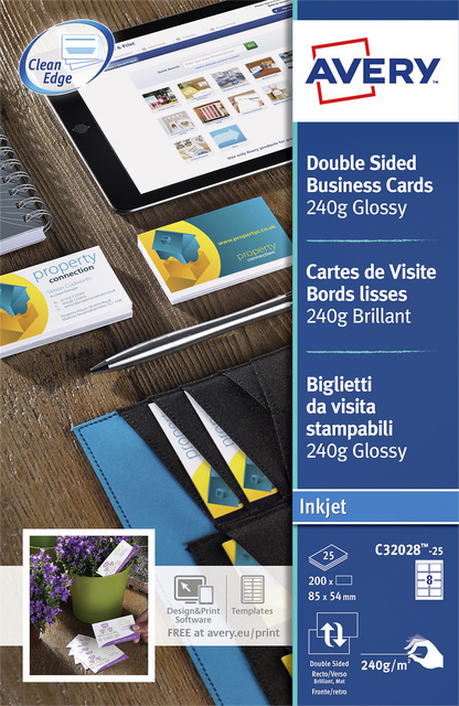 Pour imprimantes à jet d'encre. Ft carte de visite: 85 x 54 mm (l x h). En carton rigide. Pour faire des cartes de visite professionnelles en un tournemain. Cartes de visite avec des bords lisses. Conception et impression faciles grâce au logiciel gratuitAvery Design & Print.