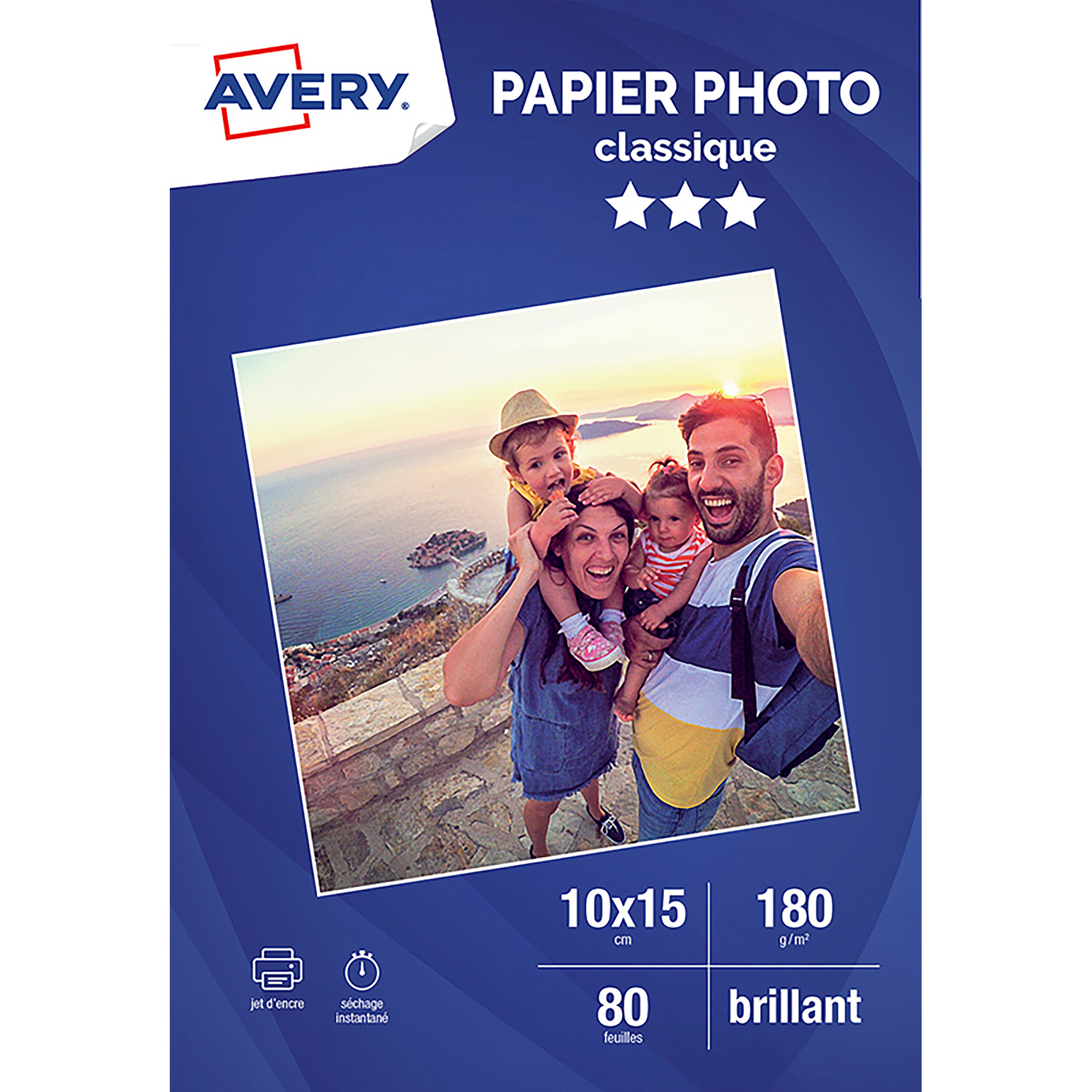 Print your everyday photos with this 10 x 15 cm glossy Avery paper. The special coating allows for bright, contrasting prints and instant drying. The weight (180 g/m²) makes it ideal for everyday photos. Avery® photo papers are designed and tested to ensure compatibility with all inkjet printers, regardless of the brand.