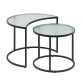 Detailled descriptionThis set of 2 side tables of Ø 47 cm and 60 x 46 cm is made to be perfectly suit any occasion and they only take up little space. They are made out of textured glass, which creates a translucent look, ideal for industrial style interiors.
