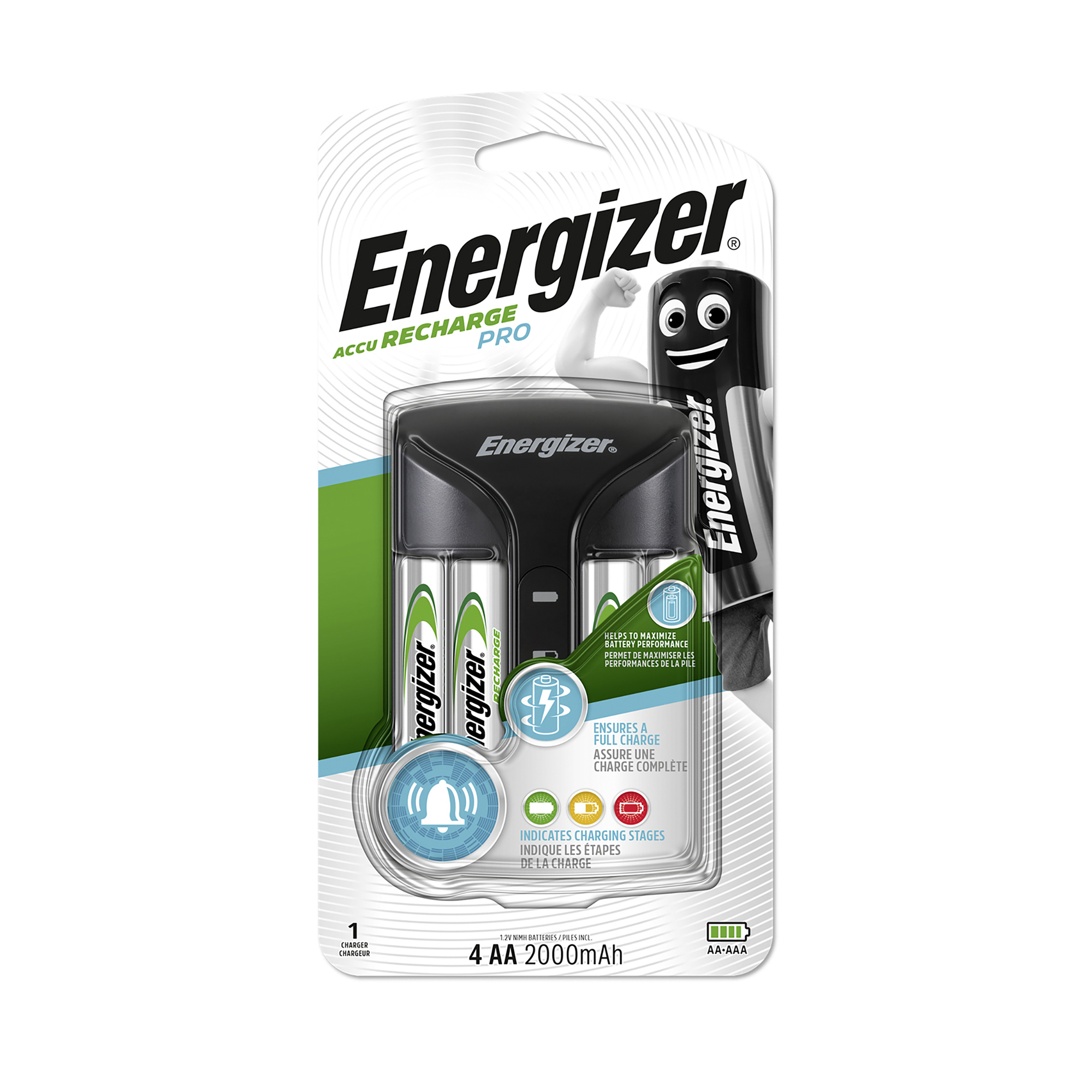 Thanks to its intelligent and ingenious technology, the Energizer Pro-Charger charger can inform you: