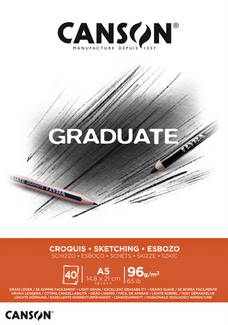 Faites le choix de la qualité et de la performance avec le Bloc de dessin GRADUATE CROQUIS A5 de Canson, et laissez libre cours à votre imagination et à votre talent.