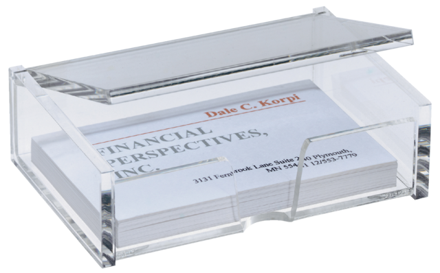 Le design de la boîte permet un accès facile et rapide à vos cartes de visite lorsque vous en avez besoin. Il suffit de soulever légèrement le couvercle pour accéder à vos cartes, puis de le refermer pour les protéger à nouveau.