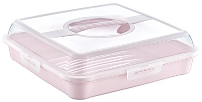 Detailled descriptionPlateau pour gâteau amovible, poignée ergonomique,carré, matériau: PP, dimensions:(L)345 x (P)345 x (H)105 mm, partie inférieure et poignée:rose