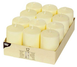Detailled descriptionEn paraffine, hauteur: 60 mm, durée de combustion : env. 6heures, à tête platecontenu : 12 pièces