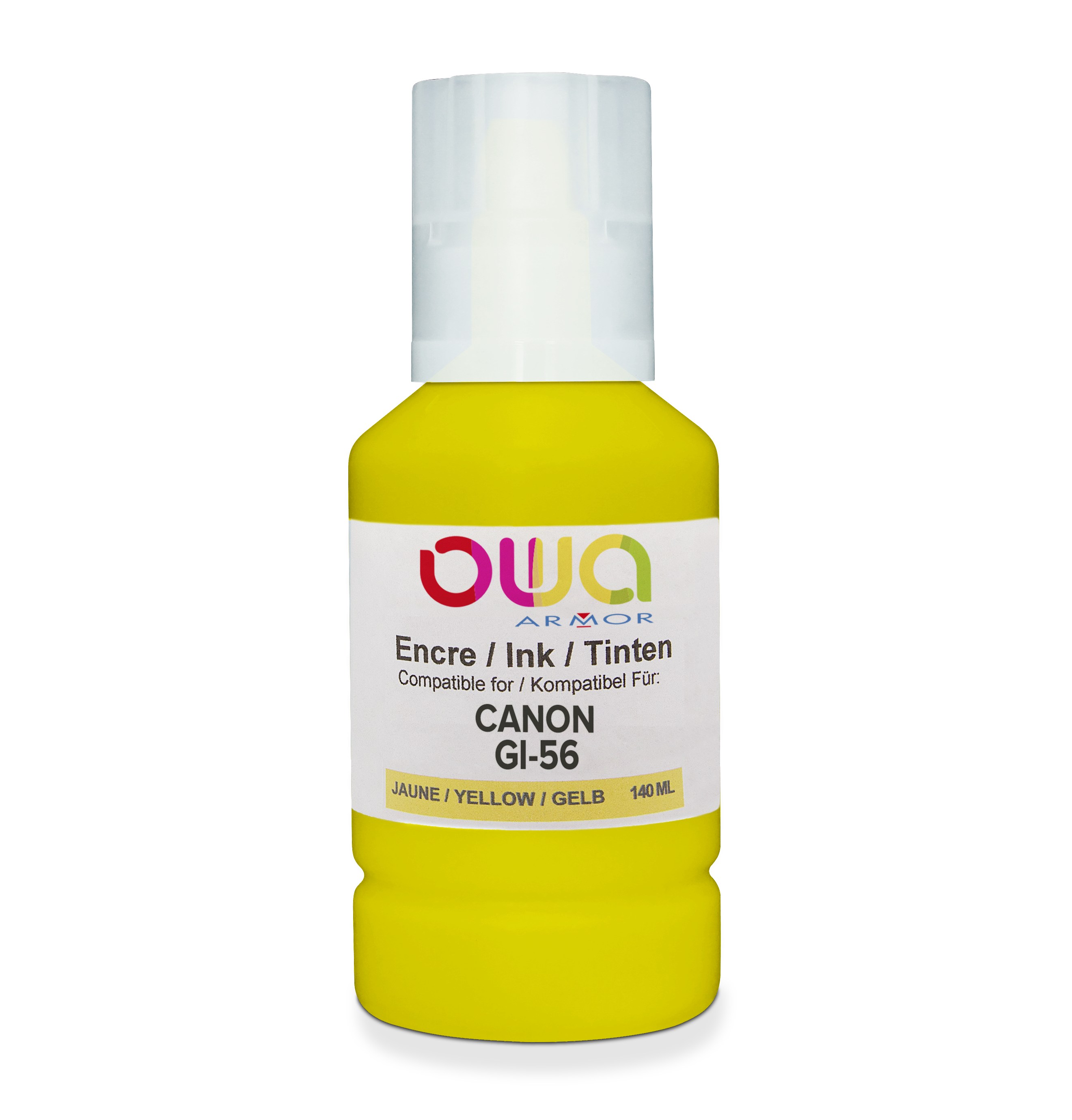 Other cartridges with the same compatibilitiesEN_Bouteille d'encre compatible OWA - standard - Noir - pour CANON GI-56 BKfrom€28.50 ex VATEN_Bouteille d'encre compatible OWA - standard - Cyan - pour CANON GI-56 Cfrom€26.95 ex VATEN_Bouteille d'encre compatible OWA - standard - Magenta - pour CANON GI-56 Mfrom€26.95 ex VATEN_Bouteille d'encre compatible OWA - standard - Jaune - pour CANON GI-56 Yfrom€26.95 ex VATCanon GI56BK- ink bottle black for inkjet printer Maxify42 reviewsfrom€17.50 ex VATCanon GI56C- ink bottle separate colours for inkjet printer Maxify7 reviewsfrom€29.50 ex VAT