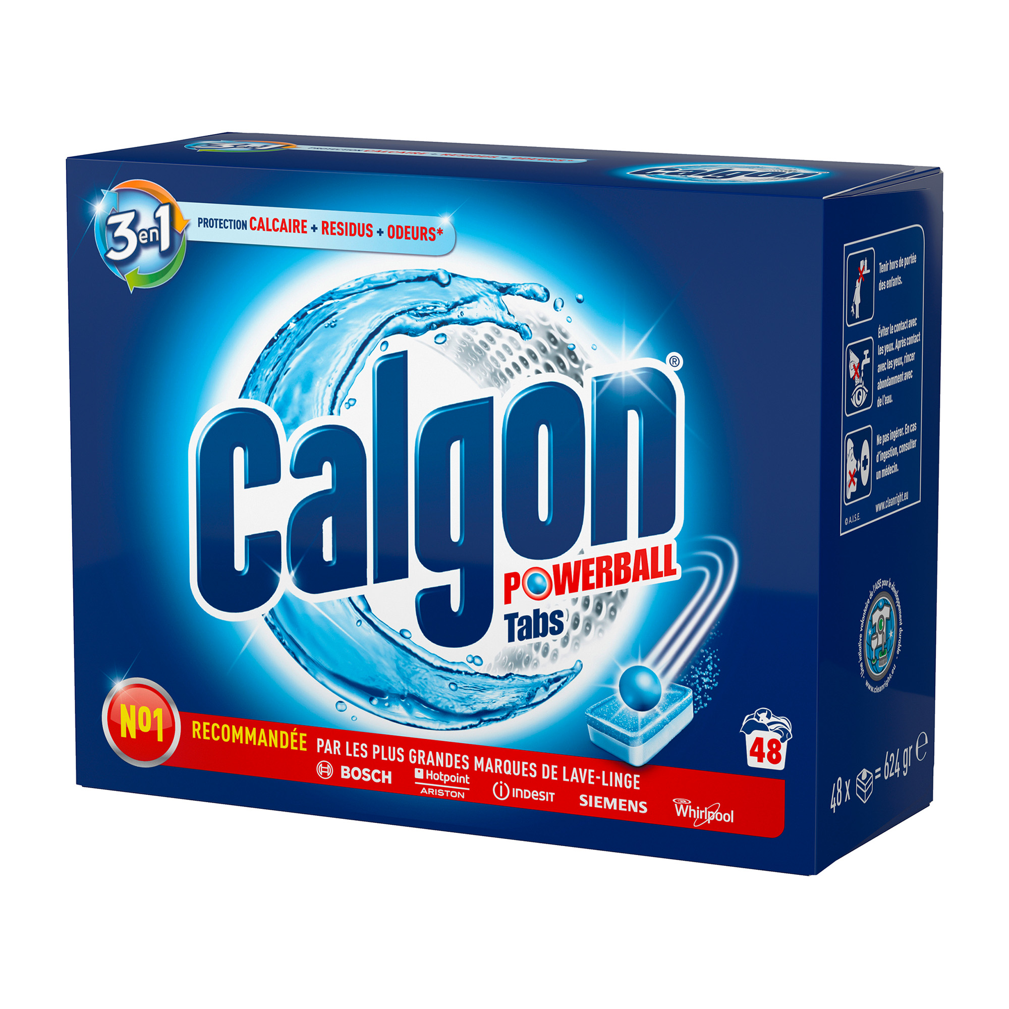 Detailled descriptionCalgon prevents limescale deposits by protecting the laundry and the washing machine. Optimal protection against limescaleContains active anti-dirt agentsPrevents the formation of bad odors.Box of 48 tablets.