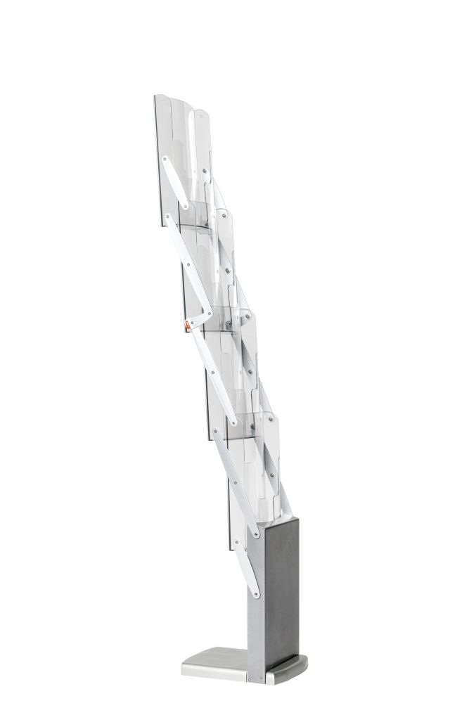 Allow clients or guests to take a brochure from your Deluxe Brochure Holder. This brochure holder is very sturdy and takes up very little room. It can be assembled in mere seconds by lifting the frame and snapping it into place. It comes with a reinforced, padded bag with a zipper, making the Brochure Holder Deluxe perfect for use at exhibitions and events. Ideal for public spaces, the hospitality industry, or any exhibition or event setting.