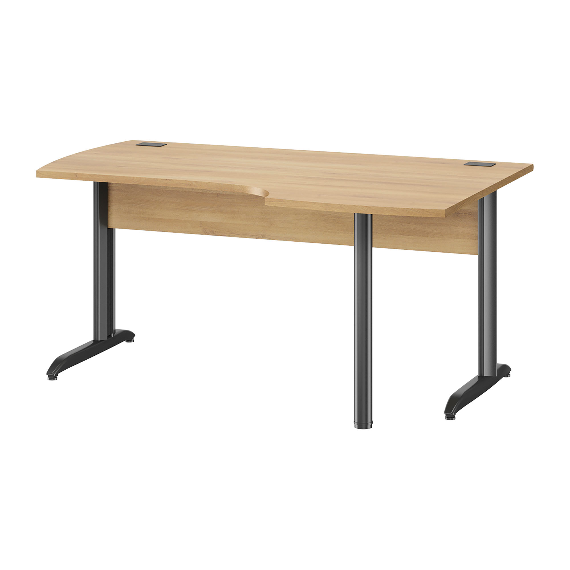 Bureau d'angle compactavec retour, avec plateau arrondi de 25 mm d'épaisseur en panneau de particules mélaminés.