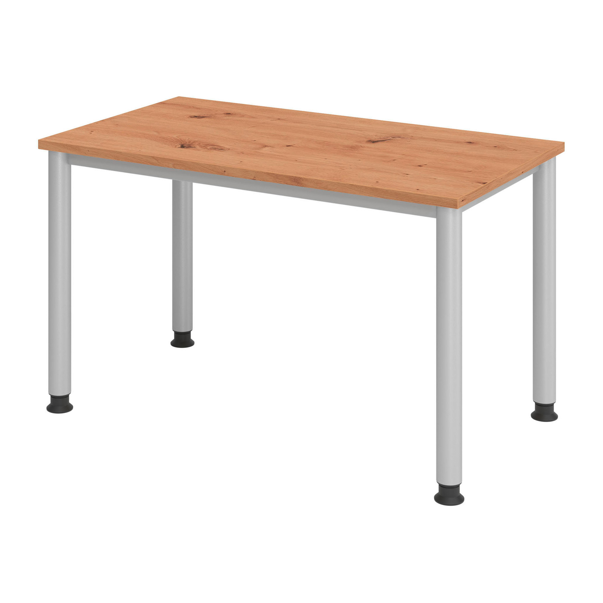 Hauteur de travail 68,5 - 81 cm. Réglage progressif de la hauteur. Épaisseur du plateau de table 2,5 cm. Piètement argenté (similaire à RAL 9006). Piètement colonne diamètre 6 cm, base ajustable diam. 7 cm. Cadre 2 x 4 cm (l x P). Plateau de table disponible en 2 couleurs: chêne ambre, blanc.