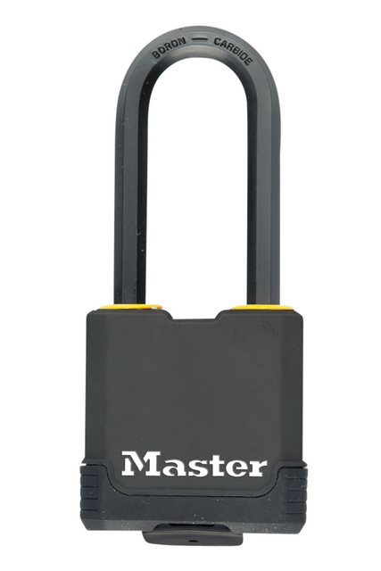 * Cadenas en acier laminé 48mm avec revêtement anti-corrosion. * Anse octogonale en alliage de bore, diamètre 8mm. * Anse haute : 38mm. * Cylindre de précision à 4 goupilles. * Double verrouillage à billes. * Capuchon de protection sur la serrure. * 4 clés.