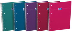 Detailled description160 pages, 90 g/m2, couverture carte souple plastifiée matte spirale métal, avec microperforation, perforé 4 trous, en paquet de 5 pièces assorti dans les couleurs: vert, bleu, pourpre, rouge, framboise