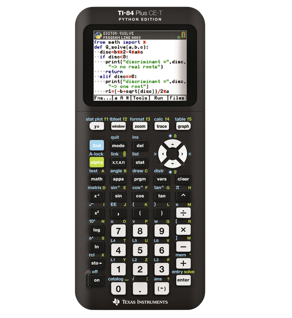 * La puissante calculatrice graphique et numérique pour les mathématiques et les sciences dans les écoles secondaires. * Le mode examen est obligatoire pour les examens finaux de HAVO 2018 et VWO 2019 aux Pays-Bas. * Cette édition Python comprend une application Python spéciale permettant aux étudiants de programmer en Python. * La TI-84 Plus CE-T avec écran couleur rétroéclairé, interface améliorée et batterie rechargeable. * Câble d'ordinateur USB pour le transfert de fichiers et le chargement de la batterie inclus. * Format de l'écran 320x240 pixels (diagonale de 2,8 pouces). * Résolution de l'écran 140 DPI, couleurs 16 bits. * Mémoire Flash ROM de 3,5 Mo pour le stockage des données et des applications (apps). * Mémoire RAM de 21 Ko. * Téléchargez le logiciel TI Connect et les applications gratuites à l'aide du câble USB fourni (de l'unité à l'ordinateur). * Prend en charge les langages de programmation TI Basic et ASM.