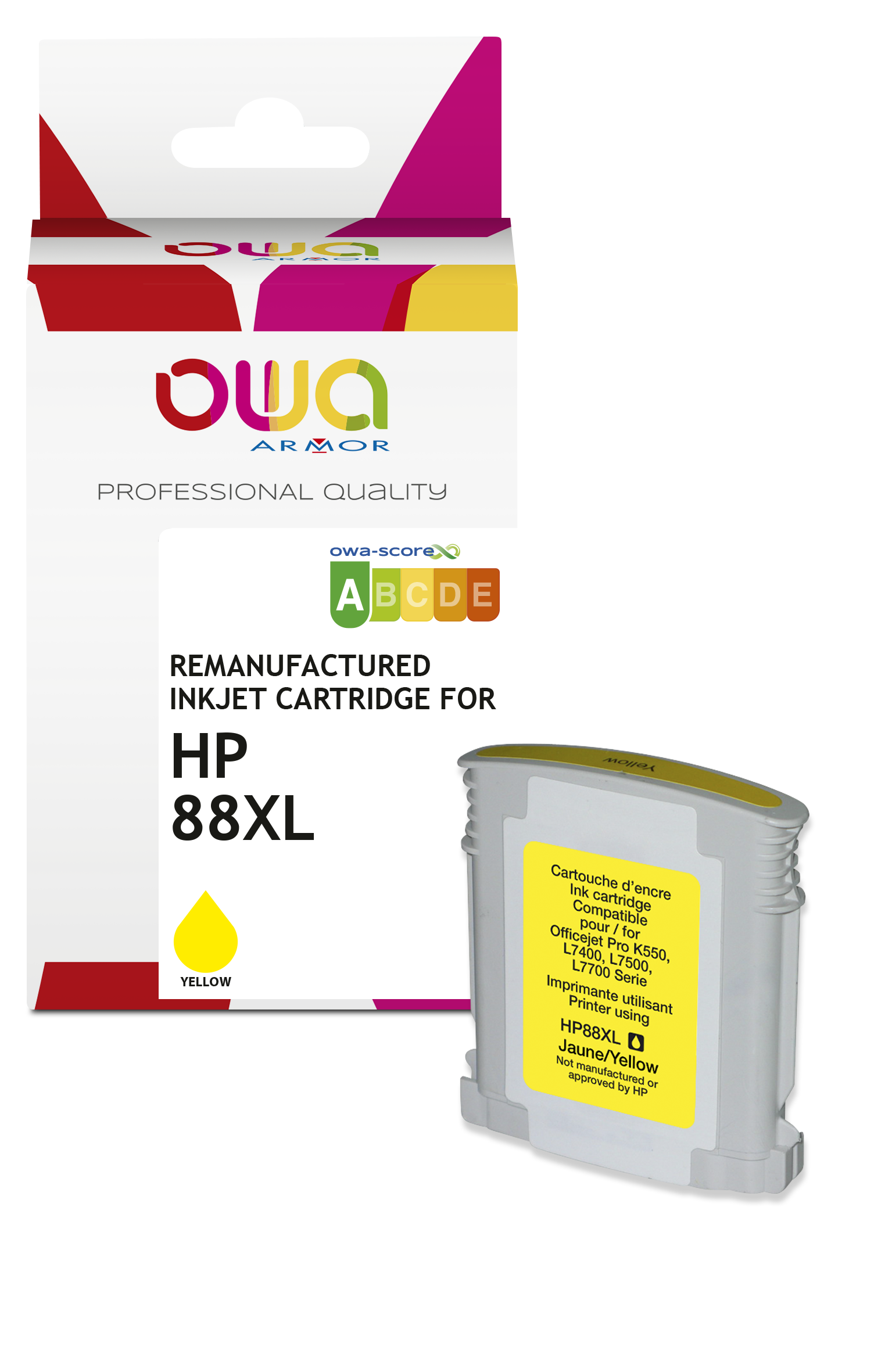 Cartouche d'encre remanufacturée OWA - haute capacité - Jaune - pour HP 88XL Y