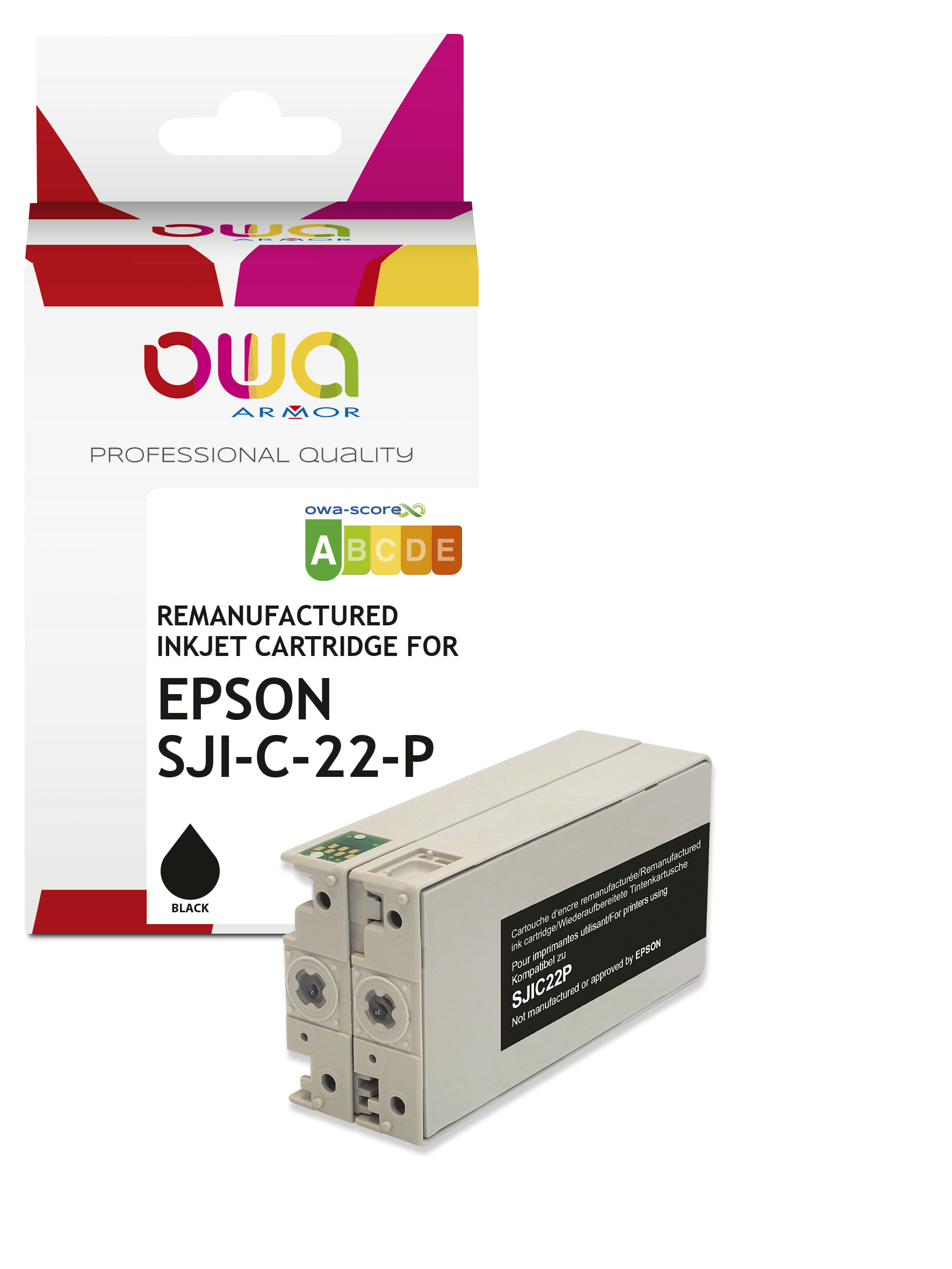 Other cartridges with the same compatibilitiesEN_Cartouche d'encre remanufacturée OWA - standard - Jaune - pour EPSON SJI-C-22-P-(Y)from€30.50 ex VATEN_Cartouche d'encre remanufacturée OWA - standard - Noir - pour EPSON SJI-C-22-P-(K)from€27.50 ex VATEN_Cartouche d'encre remanufacturée OWA - standard - Cyan - pour EPSON SJI-C-22-P-(C)from€30.50 ex VATEN_Cartouche d'encre remanufacturée OWA - standard - Magenta - pour EPSON SJI-C-22-P-(M)from€30.50 ex VATC33S020604 EPSON TMC3500 Ink YELLOW SJIC22PY 32,5mlfrom€29.50 ex VATEpson Maintenance Box - waste ink collectorfrom€48.95 ex VAT