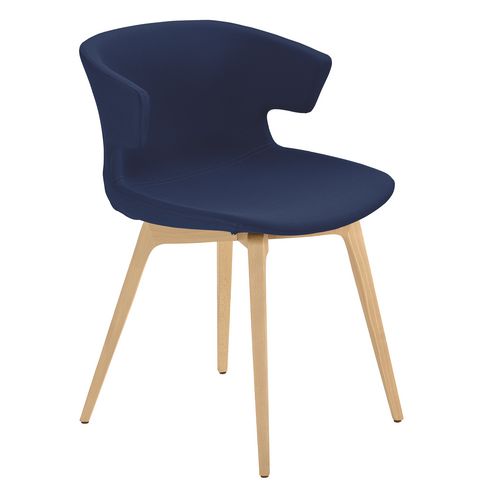 Material: structure in laminated wood. Upholstered bucket seat in 100% polyester. Undercarriage: 4 legs in wood, colour beech. With anti-slip pads. Foam filling: density seat and back 50 kg/m³. Dimensions: seat B 50 x D 43 x H 48 cm. Height back 32 cm.