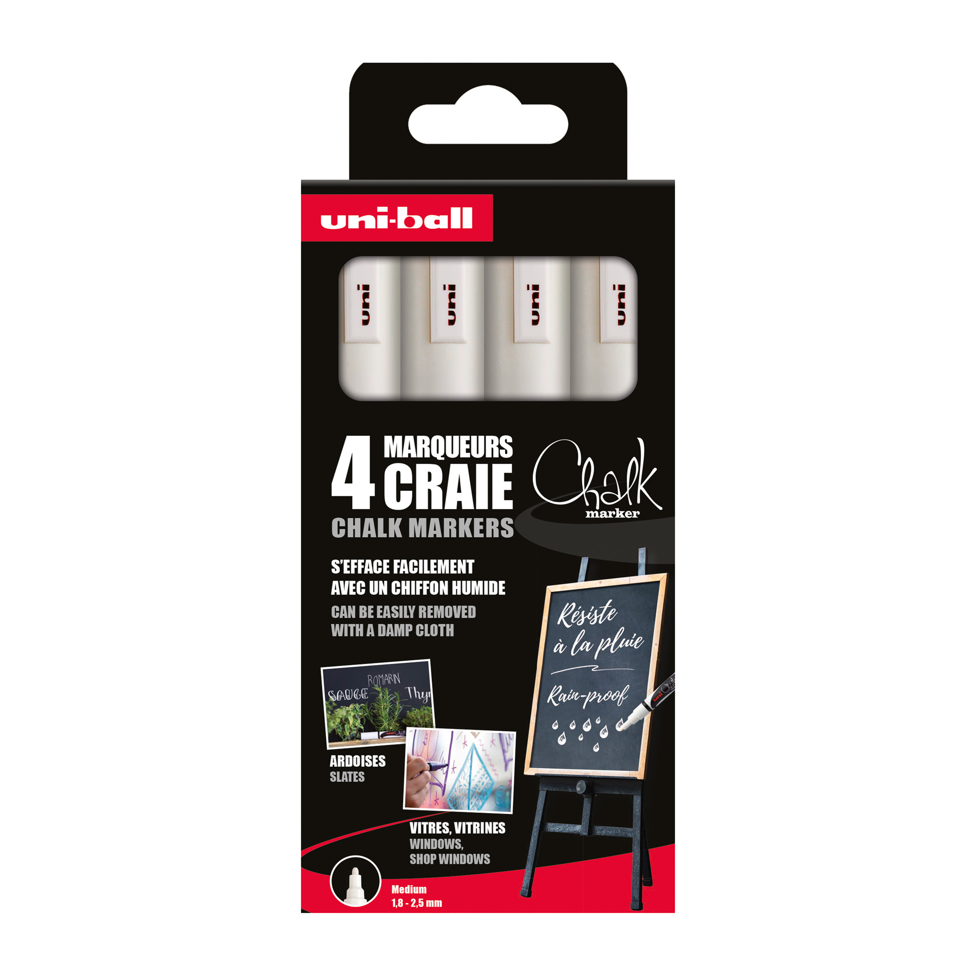 Ideal for chalkboards and windows. A single marker to use indoors and outdoors. It erases with a damp cloth. Line width from 1.8 to 2.5 mm.