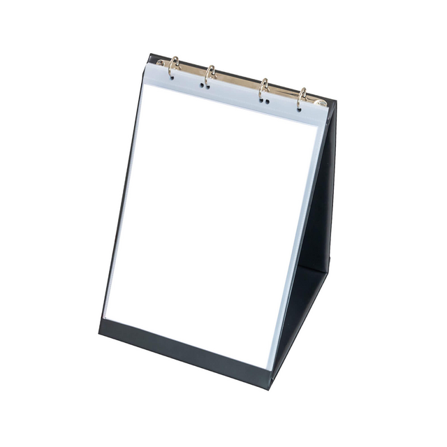* Chevalet de table Rillstab stab-in. * Fabriqué en plastique. * Le dos est doté d'un mécanisme à 4 anneaux ronds de couleur argentée ø16mm. * Il est possible d'insérer des pochettes ou du papier à n'importe quel moment. * Comprend 10 pochettes en polypropylène sans acide avec insertion d'un document par le haut. * Très facile à mettre en place grâce à la fermeture par bouton-poussoir, créant une forme triangulaire robuste.