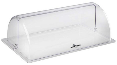 Optez pour la Cloche Rolltop récipients GN et plateaux GN de couleur transparente, un accessoire indispensable pour conserver et présenter vos aliments de manière élégante et fonctionnelle. Conçue spécialement pour les professionnels, cette cloche est idéale pour les restaurants, les buffets, les traiteurs et les cantines.