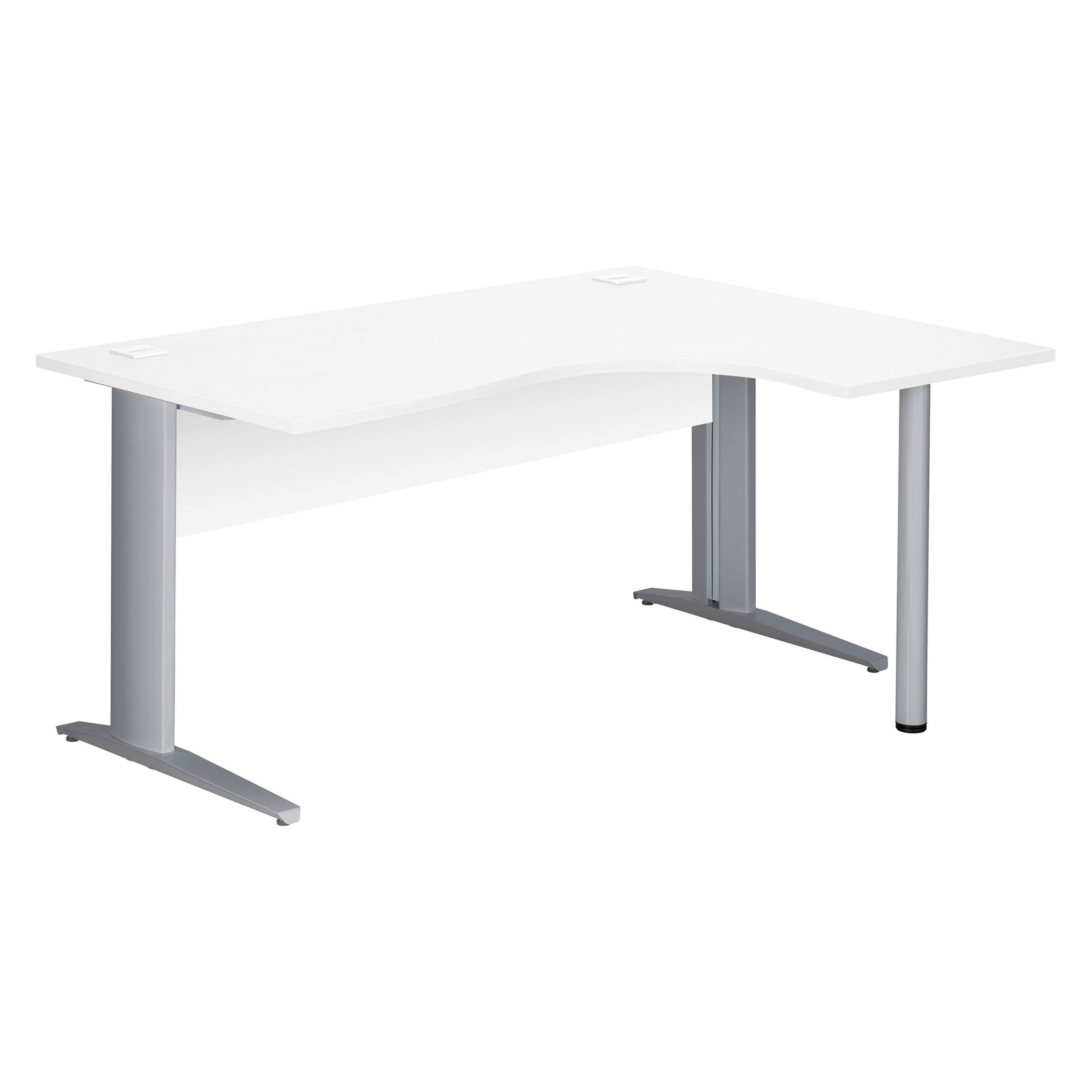 Compact desk Excellens Metal L 160 cm right return top + white straight wood modesty panel - metal leg L