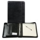 Detailled description* Conférencier de luxe en matière similicuir. * Format A4. * Avec bloc-note. * Mécanisme à 4 anneauxde 20mm et fermeture éclair. * Dimensions 255x345mm.