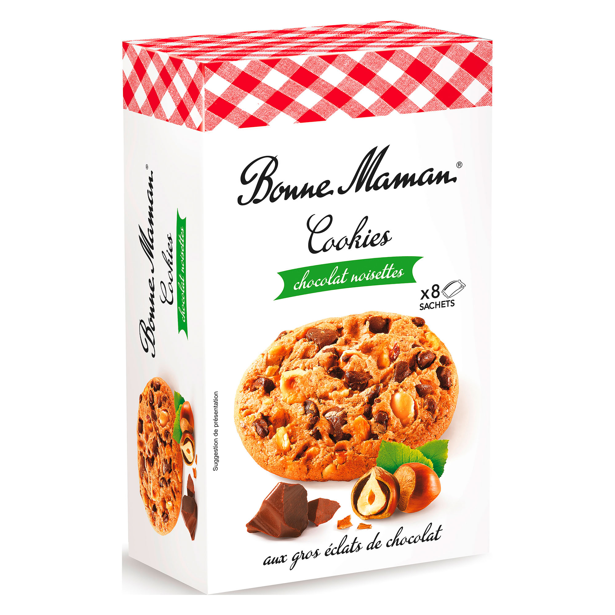 Detailled descriptionGood Mother has made these gourmet cookies for you with chocolate chips and hazelnuts. No coloring, preservatives, or additives Made in France.Package of 8 individually wrapped cookies. Weight 225 g.To be enjoyed as part of a varied and balanced diet and a healthy lifestyle.