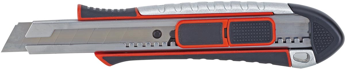 * Fonction de sécurité: élément coulissant avant avec rétraction automatique de la lame. * Certification TUV GS. * Stable: boîtier en zinc moulé sous pression avec finition en plastique ABS incassable. * Avance de lame avec grille automatique, en plus 2 cm en continu. * Tirette de sécurité, en acier au carbone particulièrement dur. * Changements de lame simples et sans outil. * Pratique: avec avance lame, guide lame métal avec grille automatique, en 17 étapes. * Zone de préhension caoutchoutée avec frein antidérapant dans les couleurs de signalisation. * Egalement à accrocher. * Application universelle : dans l'entrepôt, dans l'atelier, au bureau ou pour l'artisanat.