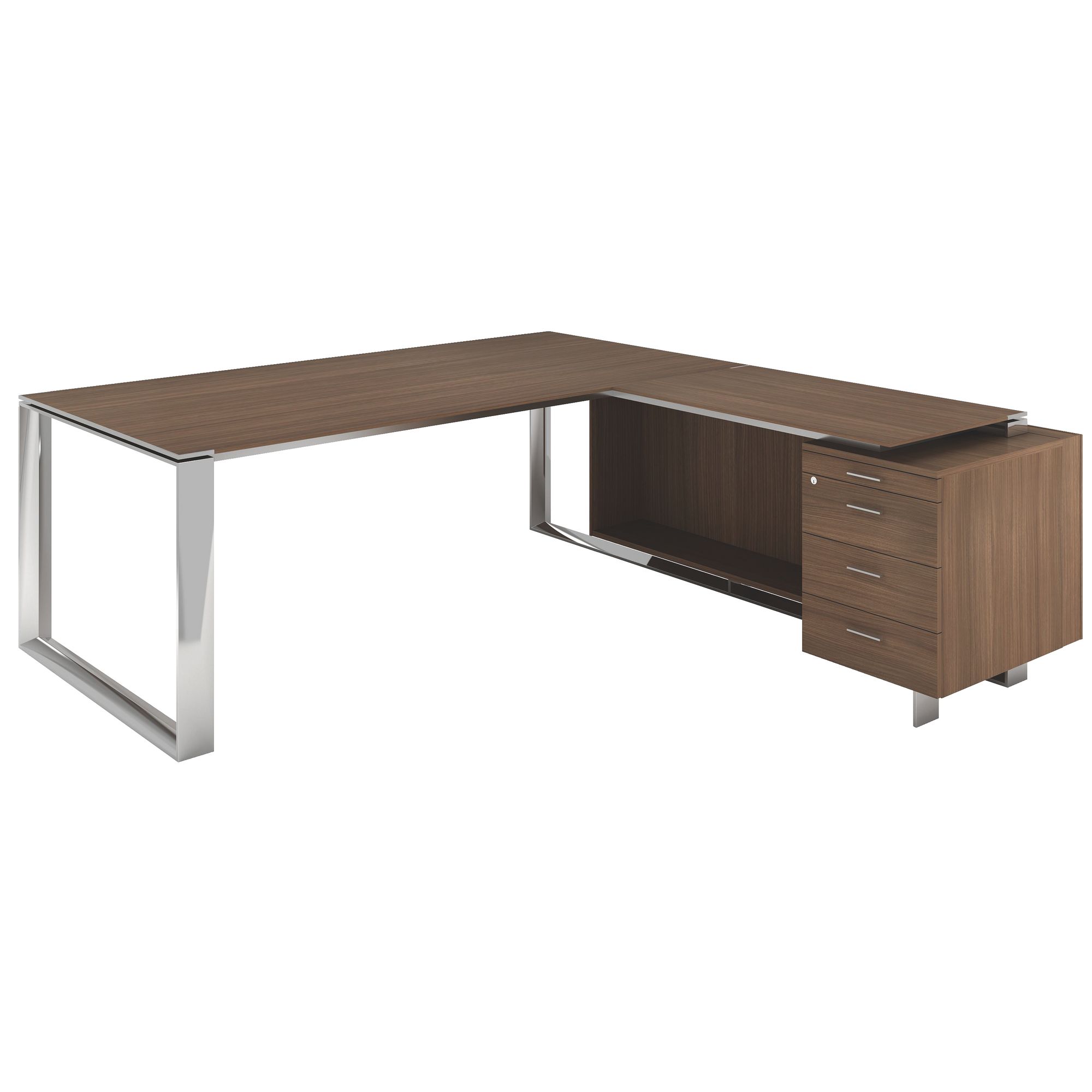 Desk return with supporting pedestal: includes 4 drawers with chrome metal handles, 3 for storage and 1 pen drawer. The centralized locking system with a lock ensures the security of your files.