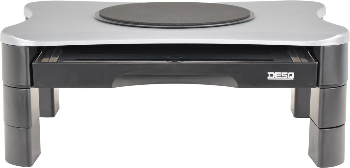 Detailled descriptionPour écrans jusqu'à 15 kg max Réglable sur 2 hauteurs différentes Patins antidérapants pour une stabilité sur toute la surface Avec tiroir de rangement Avec plate-forme pivotante Couleur: gris