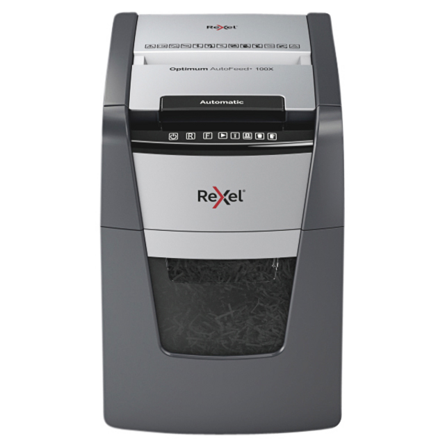 Destructeur papier avec fonction alimentation automatique pour maximum 100 feuilles A4 (80g) en même temps. * Caractéristiques du produit ;* Détruit jusqu’à 8 feuilles en même temps en alimentation manuelle. * Coupe croisée, particules 4x28mm, niveau de sécurité P4. * Bac collecteur amovible de 34 litres. * Technologie anti-bourrage. * Détruit les cartes de crédit, les agrafes et les trombones. * 20 minutes de fonctionnement en continu avec refroidissement par ventilateur. * Mise en veille automatique après 3 minutes d’inutilisation. * Commande tactile. * Fonctionnement silencieux 55dB(A). * Indicateur “bac plein”. * Dimensions : 365x530x430mm. * Garantie 2 ans (appareil et bloc de coupe).