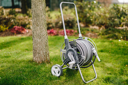 base métallique, 30 m de tuyau d'arrosage en PVC, buse d'ar-