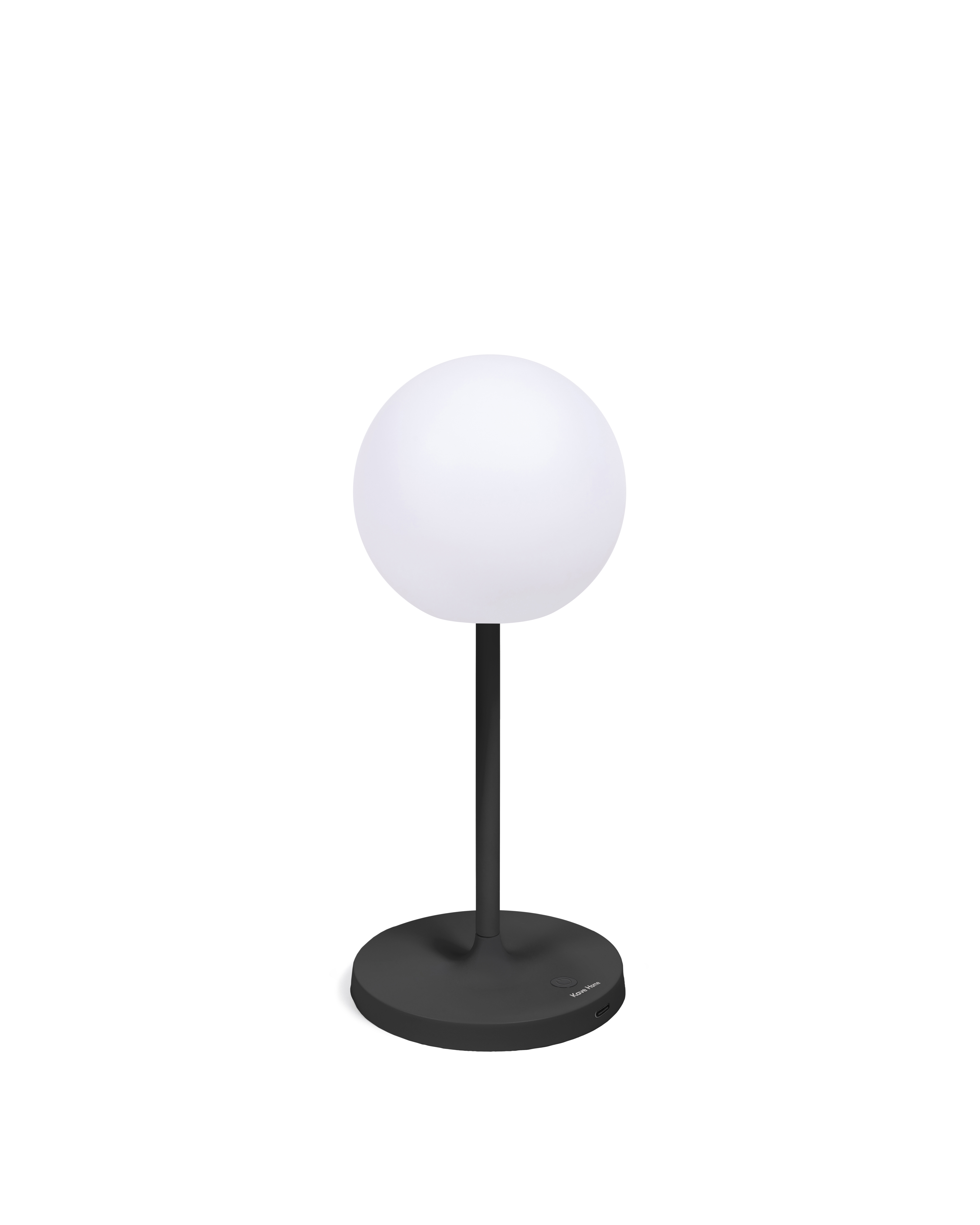 Portable plastic table lamp with a black steel base.
