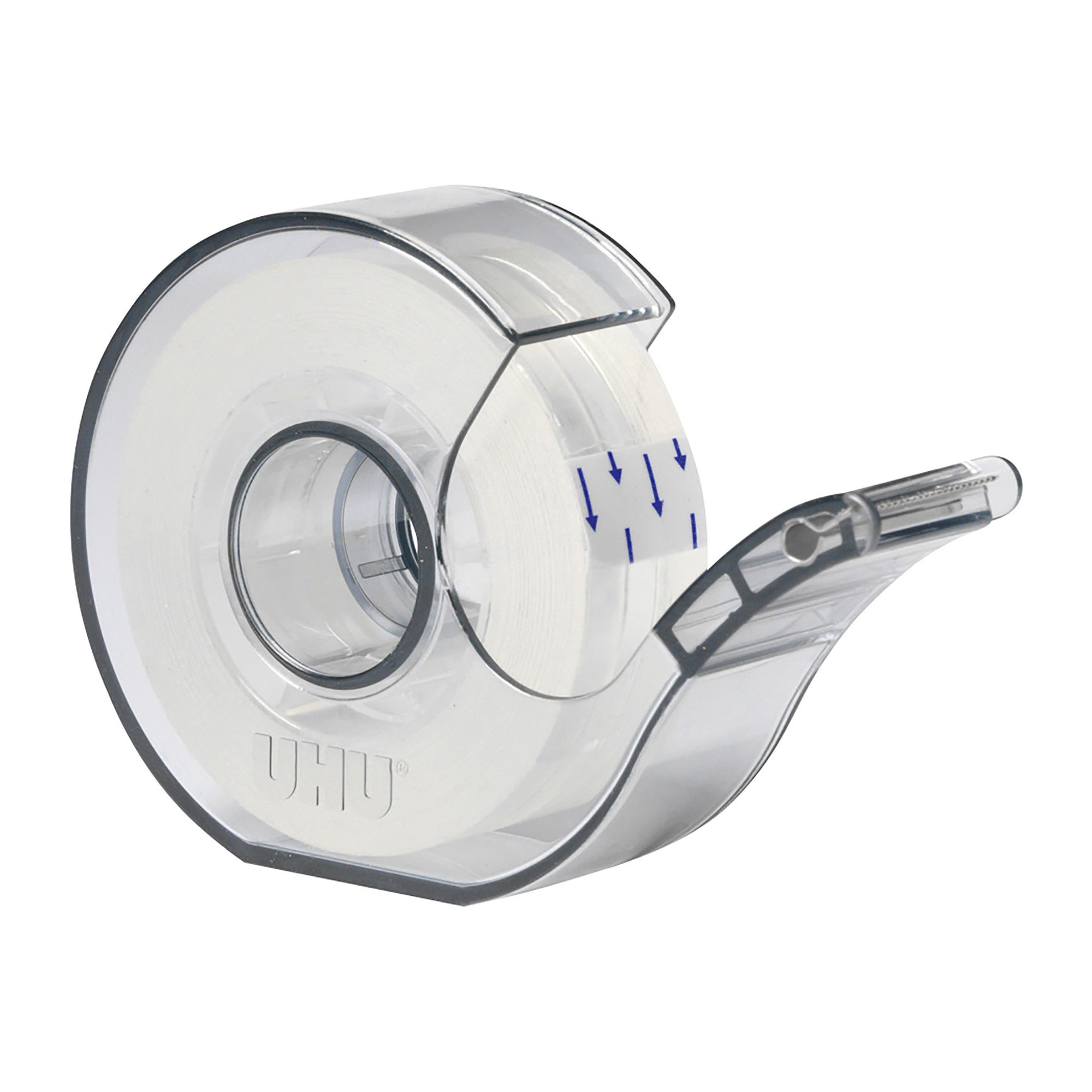 Detailled descriptionDispenser of tape width 19 mm, length 25 m. Metal blade. Neat, easy and silent cut. Deliverd with a roll Rollafix transparent UHU. Refillable. High resistance in time, strong adhesive power.