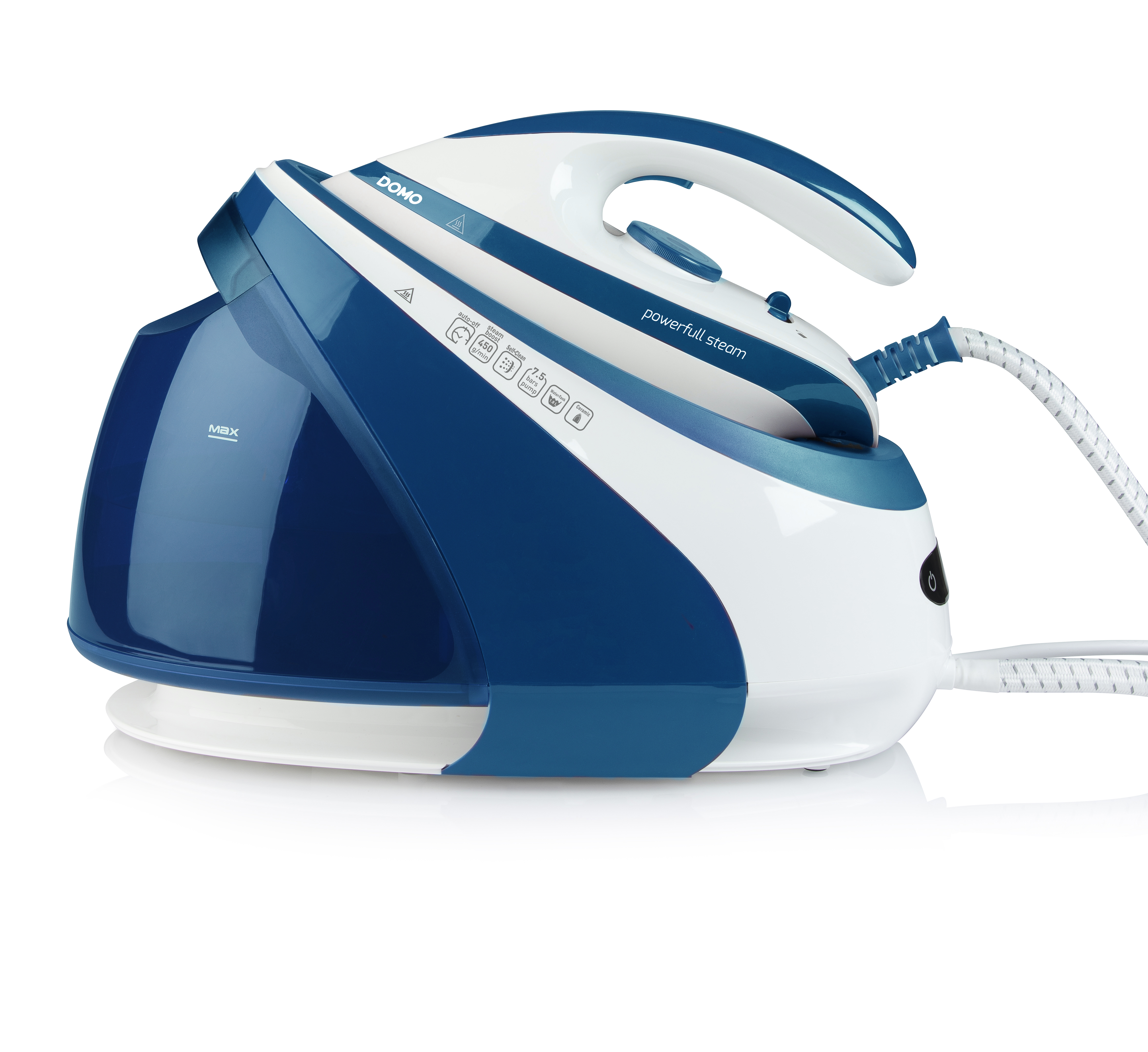 Notre générateur de vapeur DOMO DO1022S vous permet de repasser tous vos vêtements sans effort et sans le moindre pli ! Offrant une pression de vapeur élevée de 7,5 bar, un débit de vapeur continu de 160 g/min et un coup de vapeur possible de 450 g, il vient à bout des tâches de repassage les plus difficiles. Son réservoir d’eau amovible de 1,8 litre permet une utilisation prolongée sans interruption. Sa semelle en céramique glisse facilement sur tous les types de textiles. L’appareil s’entretient facilement grâce à son système anticalcaire intégré. Le rangement intelligent des câbles et le verrou de transport permettent un rangement rapide et compact. Obtenez des résultats optimaux grâce à la puissance impressionnante (3000 W) de ce générateur de vapeur DOMO.