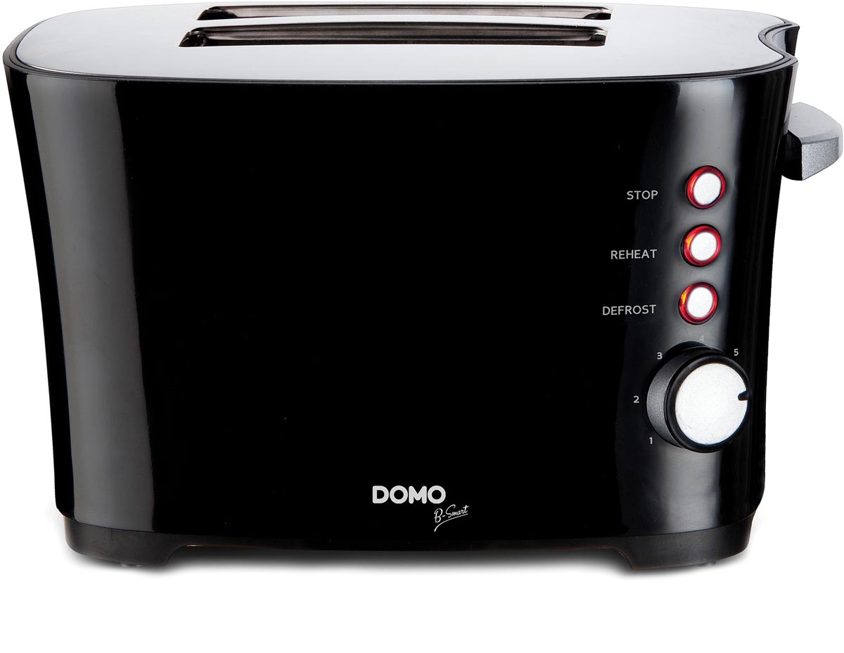 Grille-pain avec 2 fentes pour 4 tranches de pain Design noir et sobre avec face supérieure en inox et finition argentée 3 touches de fonction: réchauffage, décongélation, annulation Contrôle du brunissage variable avec 7 niveaux Cool touch Tiroir ramasse-miettes amovible