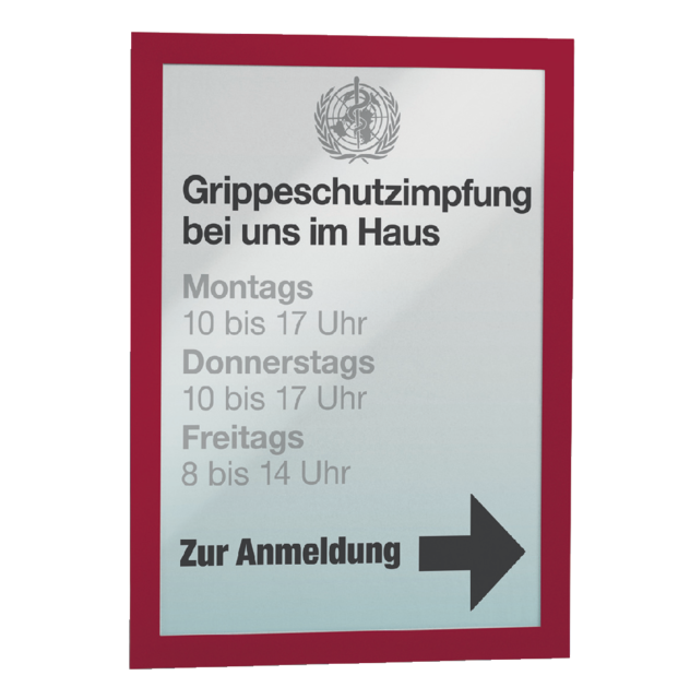 * Duraframe est un cadre autocollant constitué de deux feuilles transparentes qui sont maintenues ensemble par le bord magnétique. * Les informations peuvent être facilement remplacées grâce au bord magnétique. * Adhère à toutes les surfaces lisses. * Repositionnable .