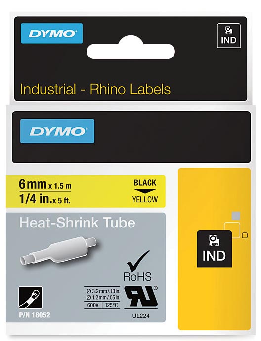 Dymo RHINO tube de thermo-rétraction 6 mm, noir sur jaune
