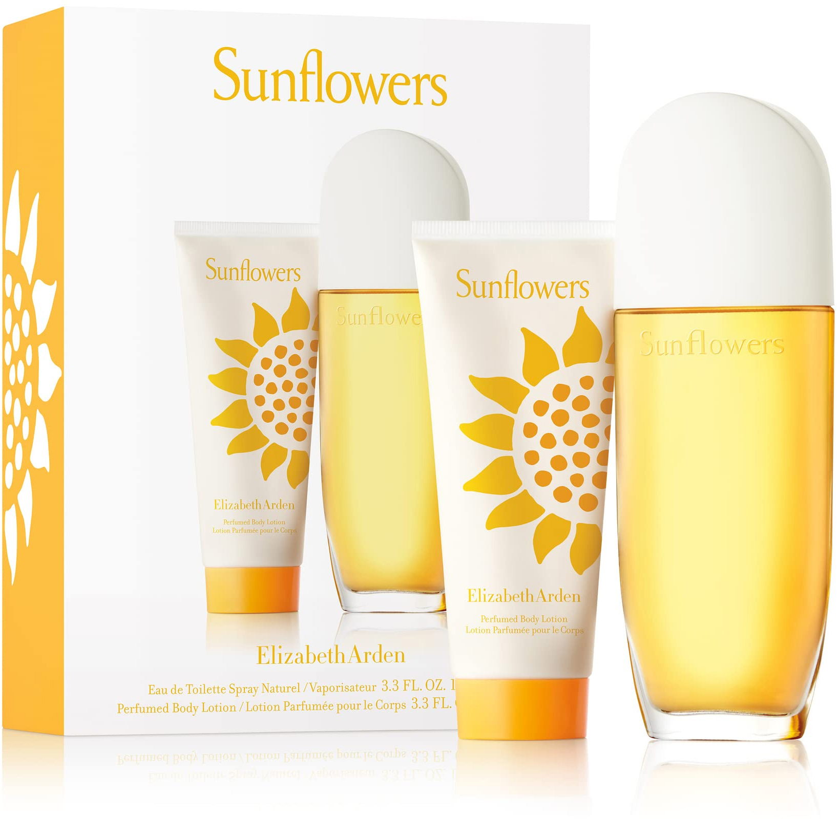 Box Sunflowers containing 1 bottle of eau de toilette 100 ml and 1 bottle of perfumed body lotion 100 ml.