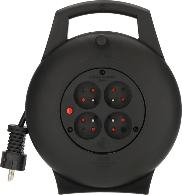 * Mini enrouleur de câble léger et maniable avec 4 prises protégées, protection contre la surchauffe et protection accrue contre les contacts. * L'enrouleur de câble pour l'intérieur est idéal pour une utilisation à la maison, au bureau ou même dans la caravane. * Enrouleur de câble en intérieur avec poignée de transport ergonomique et bonne stabilité grâce au support grande surface. * Le boîtier au design épuré est résistant aux chocs et fabriqué en plastique spécial. * Le boîtier de câble Vario-Line avec une longueur de câble de 10m (H05VV-F 3G1.5) offre une puissance en position enroulée de 230V : 1 300 W - en position enroulée de 230 V : 3 500W. * Equipé d'une prise de terre. * Marquage CE sur l'emballage, pas sur le produit.