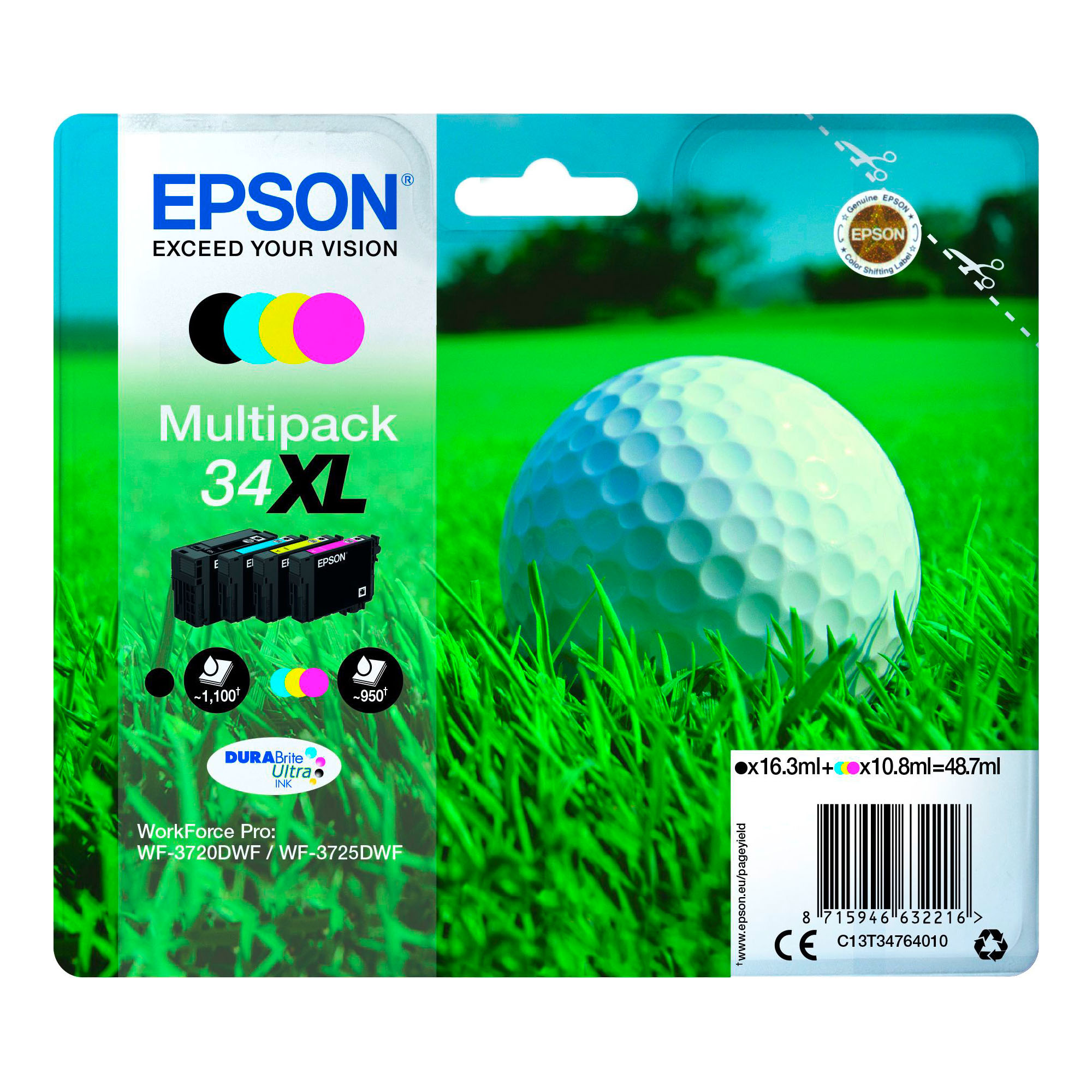 Other cartridges with the same compatibilitiesEpson 34XL pack of 4 cartridges 1 black and 3 colors for inkjet printer 9 reviews€138.26 ex VATEpson 34 cartridge high capacity black for inkjet printerfrom€24.52 ex VATEpson 34 pack of 4 cartridges 1 black and 3 colors for inkjet printer 1 review€62.85 ex VATEpson 34XL cartridge high capacity colors for inkjet printer 2 reviewsfrom€31 ex VATEpson 34 cartridge high capacity colors for inkjet printer from€13.85 ex VATEpson 34XL cartridge high capacity black for inkjet printer 4 reviewsfrom€52.40 ex VAT