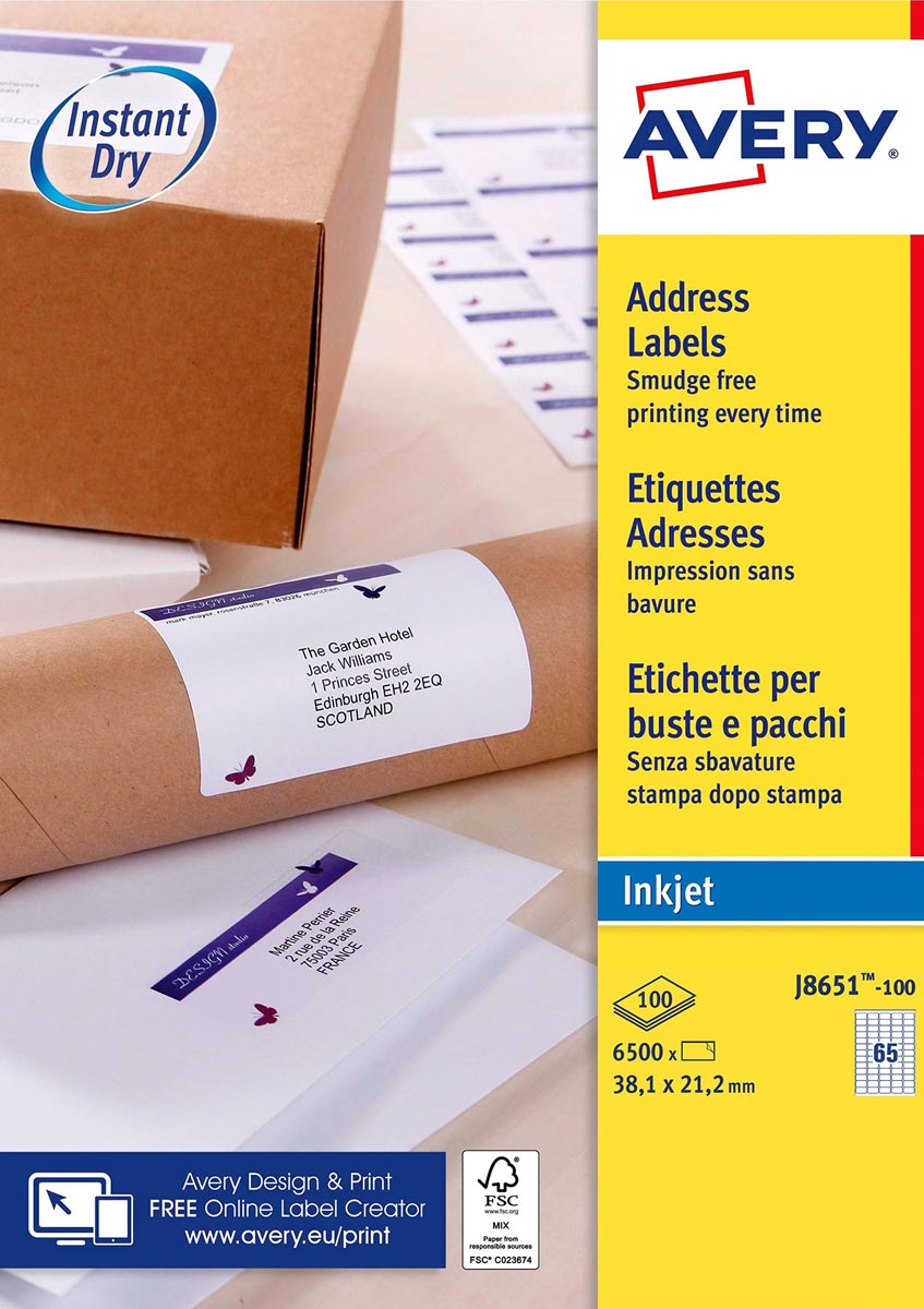 Etiquette Avery J8651-100 38,1x21,2mm blanc 6500 pièces
