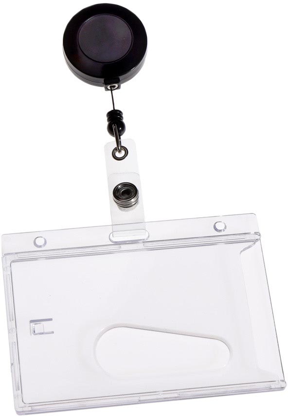 Detailled descriptionEn PVC transparent dur Version fermée Cotés ouverts Inclus système enrouleur muni d'une pince en métal solide Grâce à la lanière avec un bouton-pression, le badge pend toujours bien droit Longueur cordon: 80 cm Pour format 54 x 85 mm