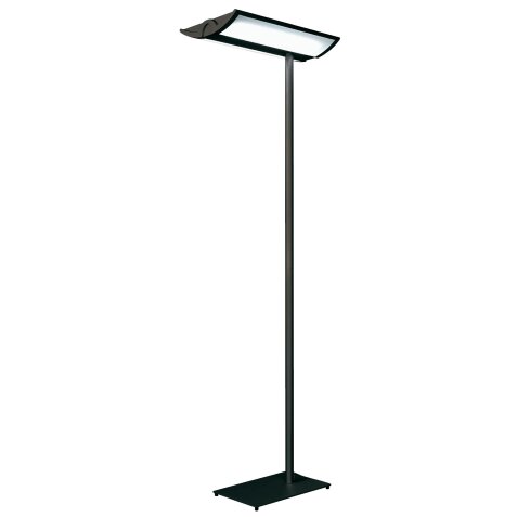 Delivered with two fluo tubes, fitting 2G11. Power 220 W. Double lighting direct / indirect per opal diffuser. Reflector. Switch and dimmer on the head. H 192 cm, base W 42 x D 28 cm. Base weighted cast, sheft aluminium laquered metal, head aluminium metal with plexiglass.