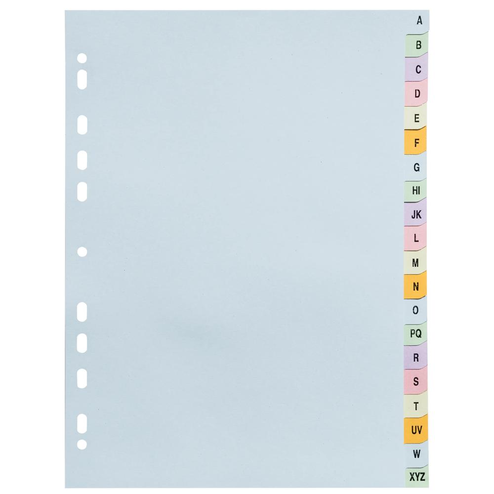 The most economical dividers now in pastel shades made from recycled card. These dividers are perfect for keeping all your paperwork and documents organised. 20 part, A-Z Multi punched allowing them to be easily inserted into ring binders or other types of binders. 100% French manufacturing, material and processing in the Exacompta-Clairefontaine factories, with Blue Angel certification which certifies that the product comes from post-consumer waste.