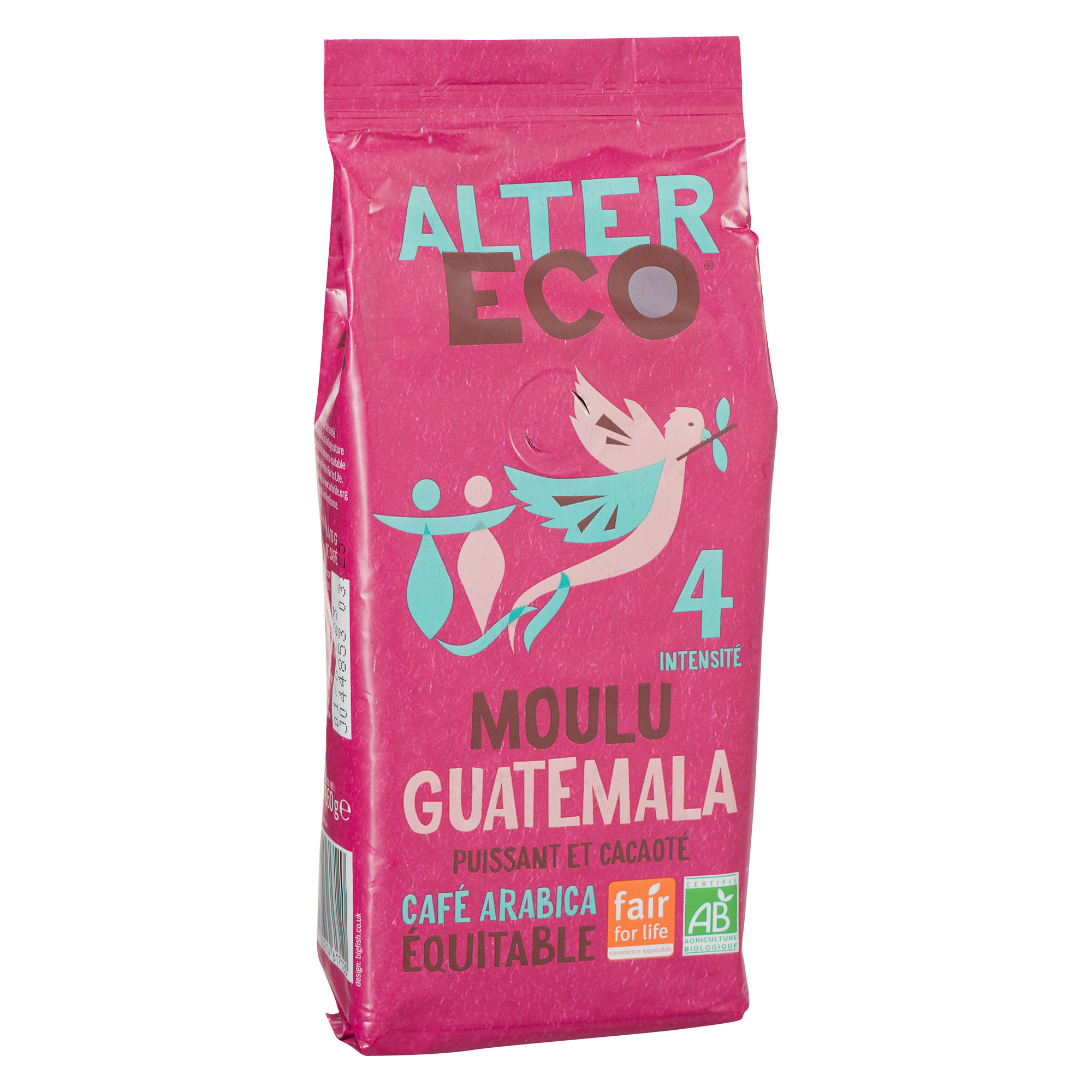 Detailled descriptionGround coffee 100% arabica strong and fruity, high quality selected in South America.AB certification, Max Havelaar label.Pack of 250 g.