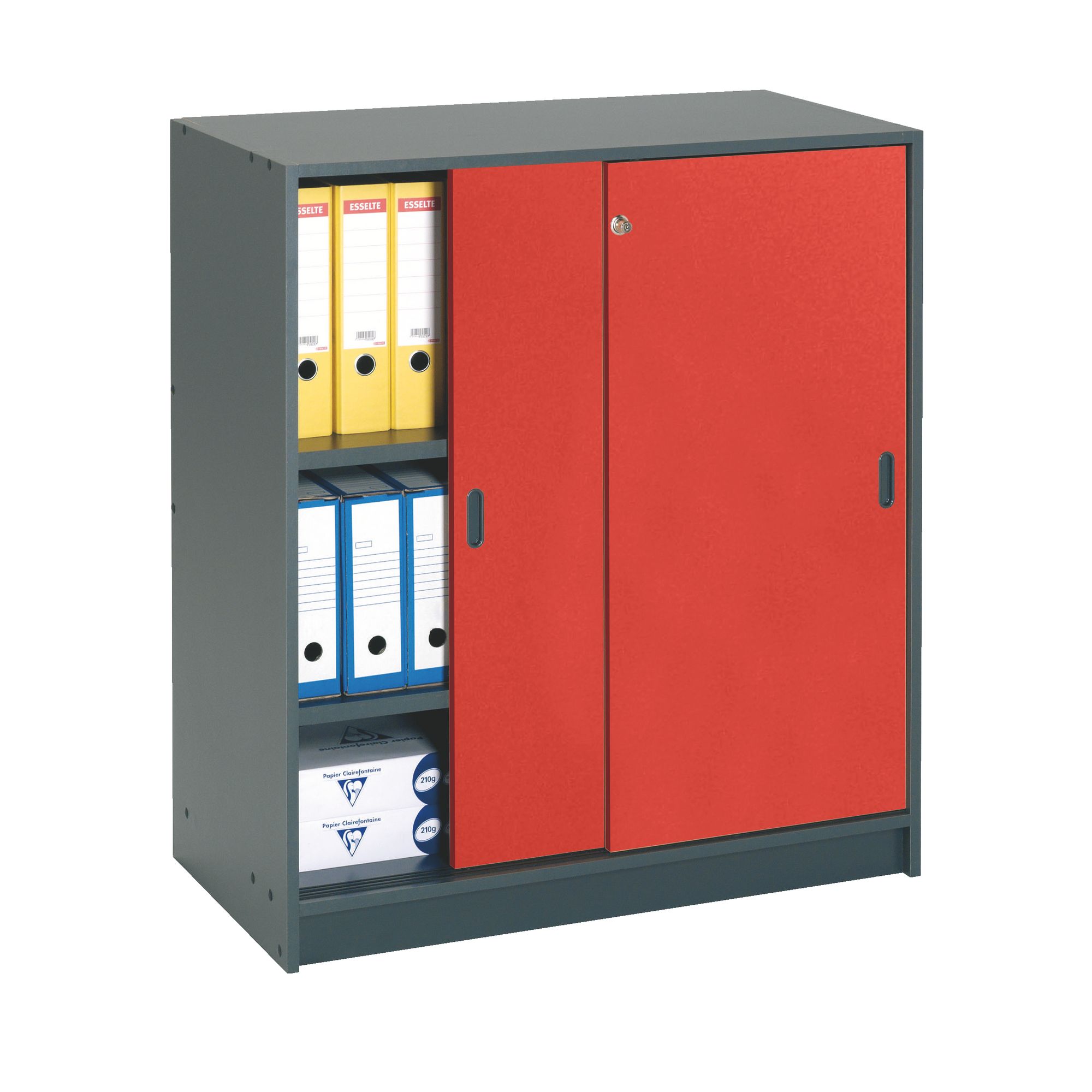 To efficiently organize your binders, documents, archive boxes, files, or other supplies, this low Harmony cabinet with sliding door will be a useful aid.